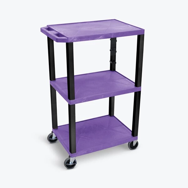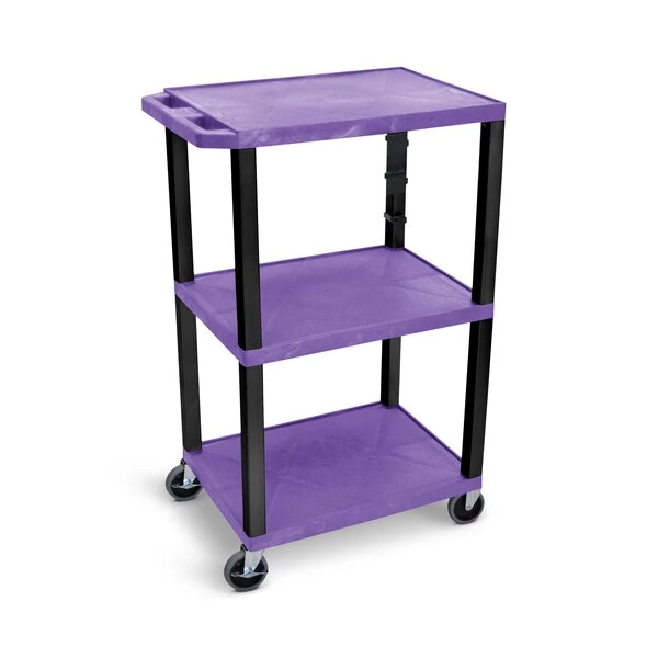 42"H AV Cart, 3 Shelves, Drawer, Black Leg