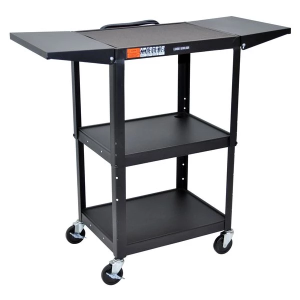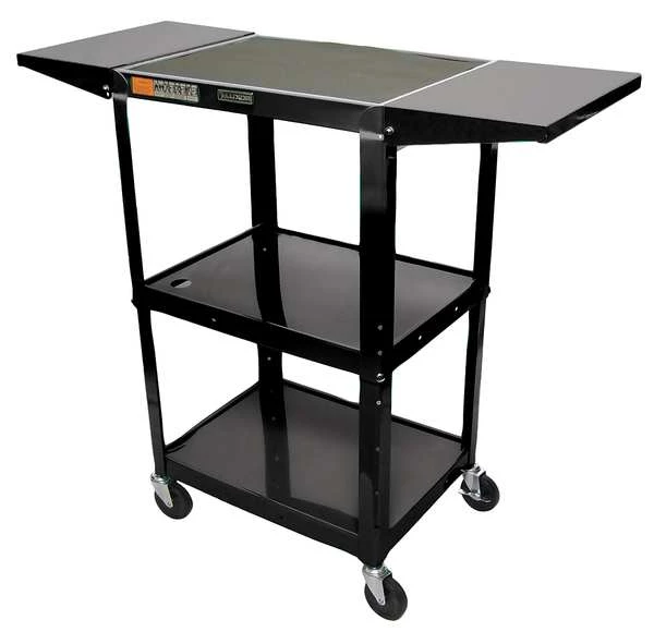Adjustable Height Work Table, Depth 18 in, Width 24 in, 300 lb Load Capacity, Height 24 in to 42 in, Color Black, Workbench/Table Leg Type Straight, 4 in Caster Dia., Workbench/Table Frame Material Steel, Caster Configuration (2) Swivel, (2) Swivel with Brakes, Caster Material Polyurethane, Workbench/Work Table Type Mobile, No. of Shelves 2