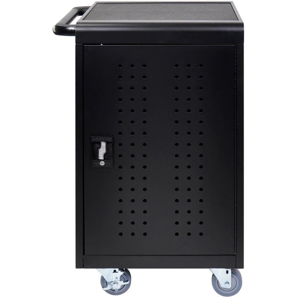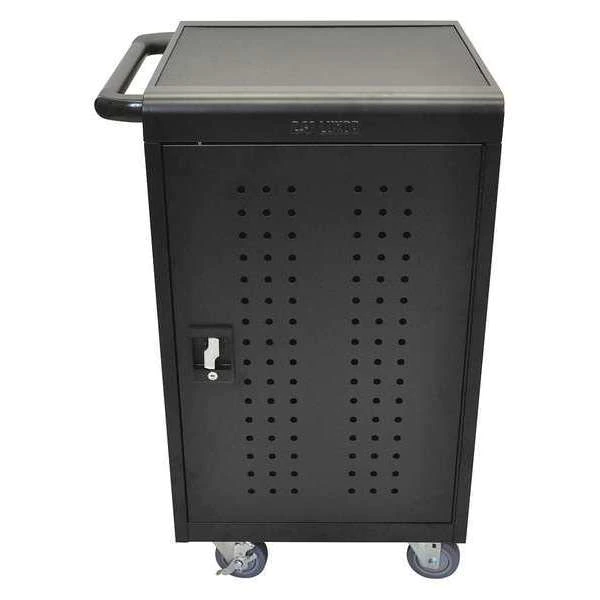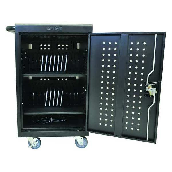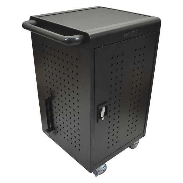 Charging Cart, Capacity 30 lb, Locking Mechanism Yes, Compatible With All Tablets, Chromebook, Material Steel, Color Black, Compartment Size 11 in H x 1 in W x 15 1/4 in D, Height 37 1/2 in, Width 24 1/2 in, Depth 21 1/4 in, Caster Size 4 in, Includes (2) 16 Outlet Power Strips, Set of 2 Keys, Side Cord Wrap, Standards UL Listed