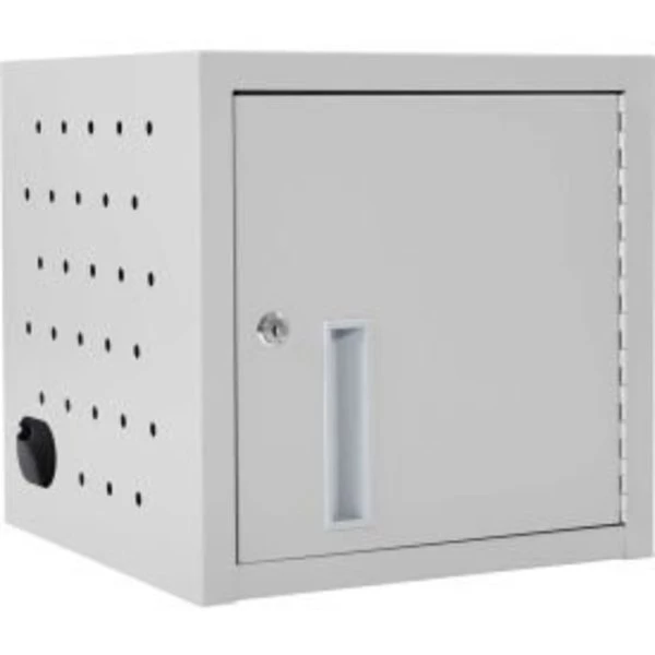 LUXOR WALL/DESK TABLET CHARGING STATION FOR 8 DEVICES, 14"W X 14"D X 14"H, LIGHT GRAY CONVENIENTLY STORE AND CHARGE YOUR TABLETS WITH LUXOR'S COMPACT 8-DEVICE WALL/DESK CHARGING STATION. THE PADDED INTERIOR AND RUBBER-COATED DIVIDERS PROVIDE PROTECTION WHILE CHARGING EACH DEVICE SIMULTANEOUSLY. THE STEEL UNIT DOES AWAY WITH CHARGING CORD CLUTTER AND AVOIDS DRAWING UNNECESSARY ATTENTION TO YOUR IT EQUIPMENT. VENTILATED SIDES ALLOW CONSTANT AIRFLOW TO ELIMINATE OVERHEATING, EVEN WHEN THE FRONT DOOR IS CLOSED AND LOCKED FOR SAFE KEEPING. UNIT ARRIVES FULLY ASSEMBLED AND READY TO ORGANIZE YOUR WORK AREA. FEATURES: <ul> CONVENIENT FOR SMALLER OFFICES, CAMPUSES, AND LIBRARIES CHARGING STATION CAN HANG ON THE WALL OR SIT ON ANY FLAT SURFACE FITS TABLETS BETWEEN PADDED 1" DIVIDERS DISCREET CHARGING BOX DOES NOT DRAW UNWANTED ATTENTION TO DEVICES INCLUDES TWO KEYS TO SECURELY LOCK DOOR ARRIVES ASSEMBLED; INCLUDES DRYWALL MOUNTING HARDWARE SHIPS GROUND MEETS ANSI/BIFMA STANDARDS SPECIFICATIONS: <ul> CHARGING BOX: 14"W X 14"D X 14"H DIVIDERS: 1"W X 12"D X 13-1/4"H LENGTH OF CORD: 10 FEET ALLOW ADDITIONAL SPACE REQUIRED FOR THE POWER ADAPTERS, POWER CORDS AND PROTRUDING POWER PLUGS FROM THE DEVICES.</ul></ul>