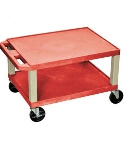 This 16"-high rolling AV cart offers two 1.5" thick shelves to support and transport audio/video equipment and more. Both shelves offer a textured surface and a .25" retaining lip to help contain contents and are made from molded plastic that won't chip warp scratch rust or peel. A recessed three-outlet UL-Listed electrical assembly with integrated cord wrap provides convenient access to power. Square legs provide sturdy support and four 4" heavy-duty casters (two with locking brake) allow for easy mobility.