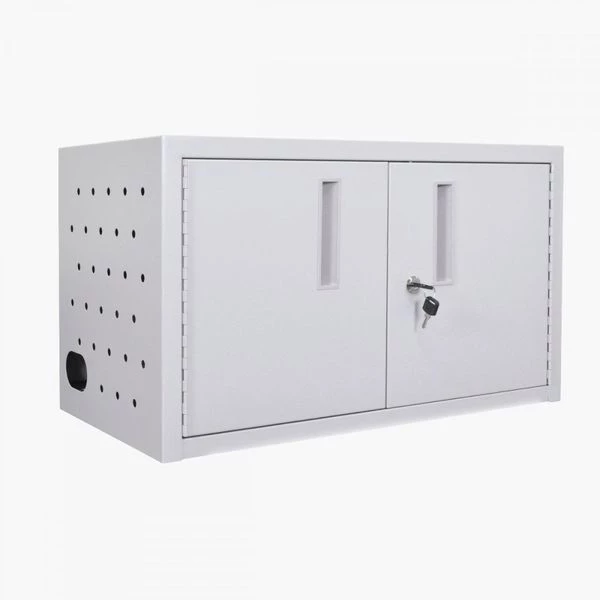 Luxor Wall/ Desk Charging Box 16 Tablets/Chromebooks includes a 16 outlet horizontal power strip. Do away with cord clutter while safely ensuring devices are always charged and ready for use. Perfect for small offices, classrooms and libraries, Luxor Wall / Desk Tablet Charging Cabinets provide a strong, simple design that's reliably secure yet affordably priced. A steel shell with lockable door coupled with a padded interior and rubber-coated dividers protect your devices, and the compact size makes Luxor Tablet Charging Cabinets great for wall mount or desktop use.
