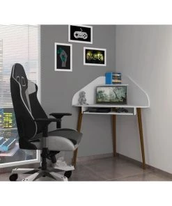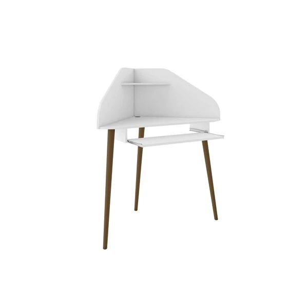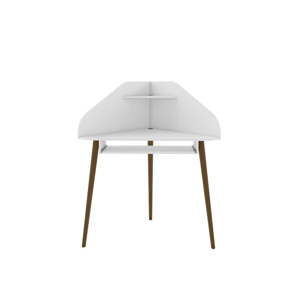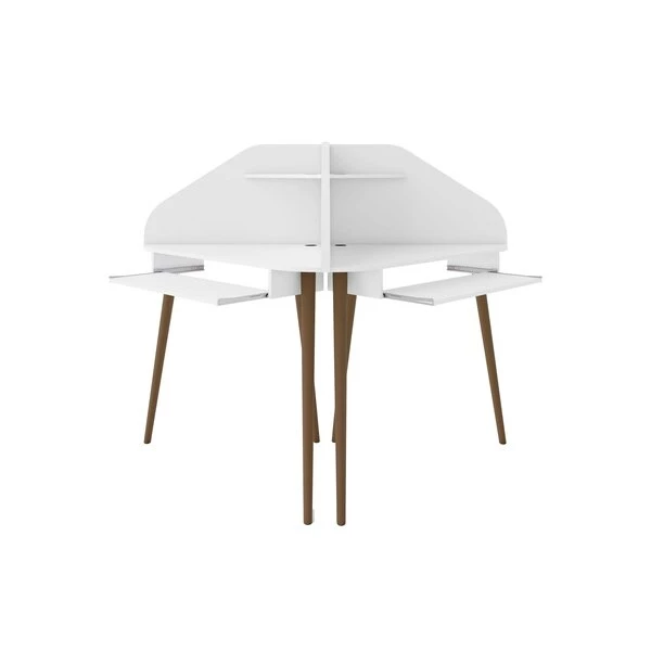Create the most stylish office cubicles and look forward to your tasks at hand with the double Bradley desks, that’s two in one. Separated at the center, two areas provide space for two people to work at the same time or one person to work double time, with space to hold desktop computers, notepads, sliding drawers for keyboards, and upper shelves to keep office accessories easily in reach. Panels keep spaces personal, while splayed legs offer Mid-Century flair and design aesthetic that lends itself to any space. Tuck in a chair and get to work.