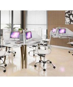 Complete work in style with the Bradley conference desk that has room for four, with ample space for storing office accessories and displaying desktop computers, while sliding drawers tuck away keyboards and tablets, and small upper shelves are equipped with wiring grommets and perfect for stashing pens and paper clip holders. Checking off tasks has never looked better or been more functional, with a work area that doesn’t compromise your space or lack beautiful design and expert craftsmanship.