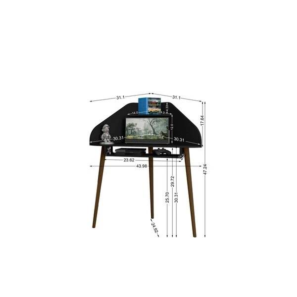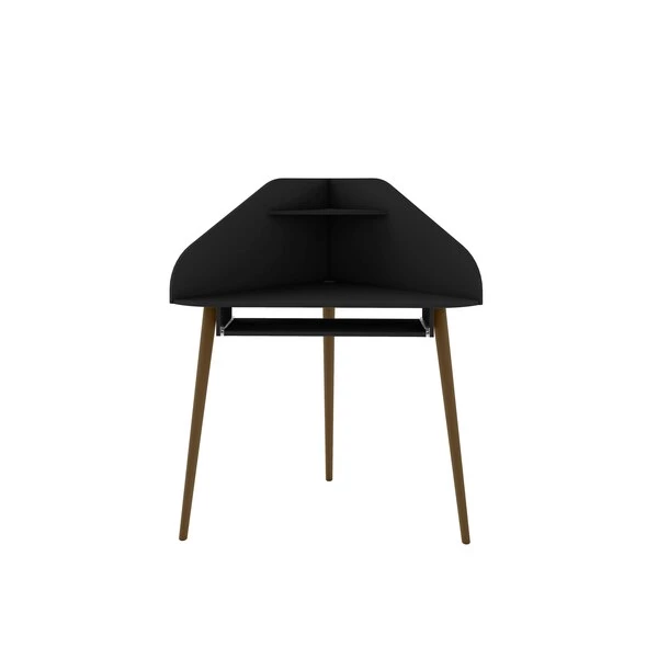 Get the job done with a desk that doesn’t cramp your workspace or compromise your space. The Bradley floating corner desk is perfect for your in-home out of the office work area with space for a desktop computer, laptop, and little shelf nook up top for keeping pens or office accessories handy. An open sliding drawer holds a keyboard or laptop, and keeps the area efficient and clean. This piece easily fits into any corner and blends seamlessly with any existing decor.