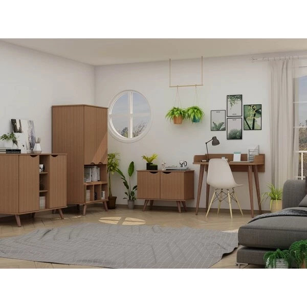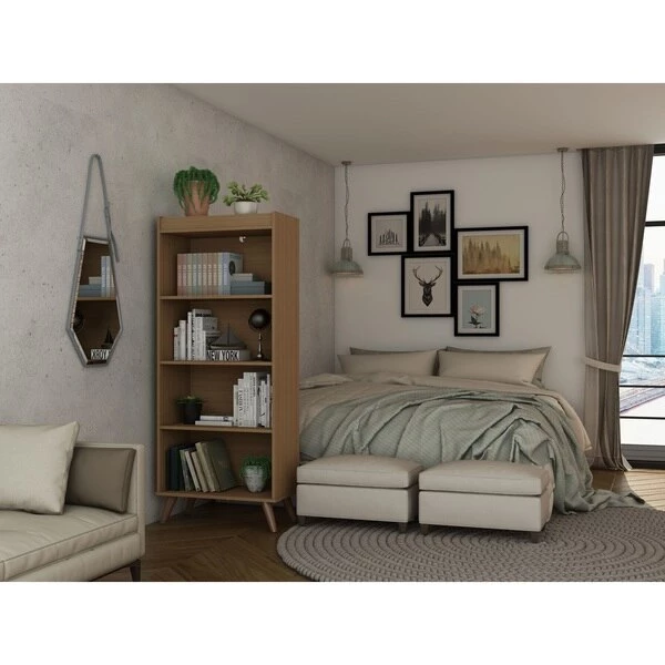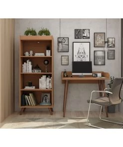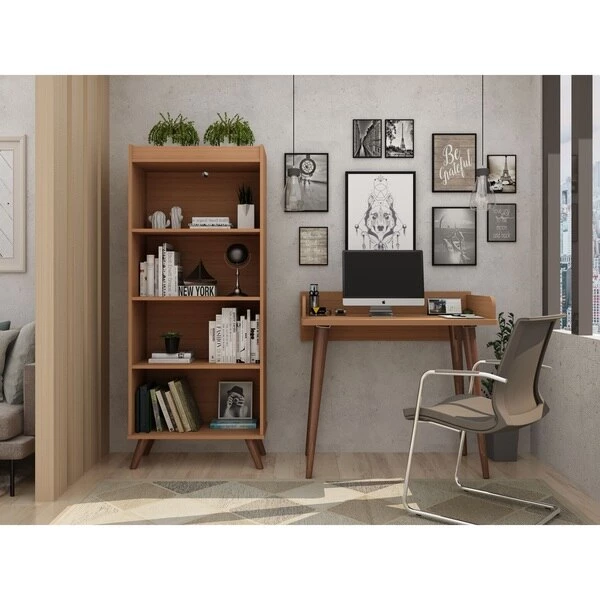 Look forward to crossing off every task with a workspace that checks off all your needs. The Hampton office set offers desk space and plenty of open shelving, without compromising on design and style. A chic bookshelf with beautiful splayed legs helps store files, books, showcases framed family photos, decorative accents, and more. A laptop and tablet easily fit together on a smooth desktop and makes for the perfect workspace, also easily moving from space to space to slide into a bedroom, off the kitchen, or office area.