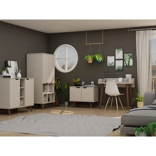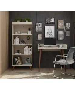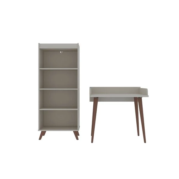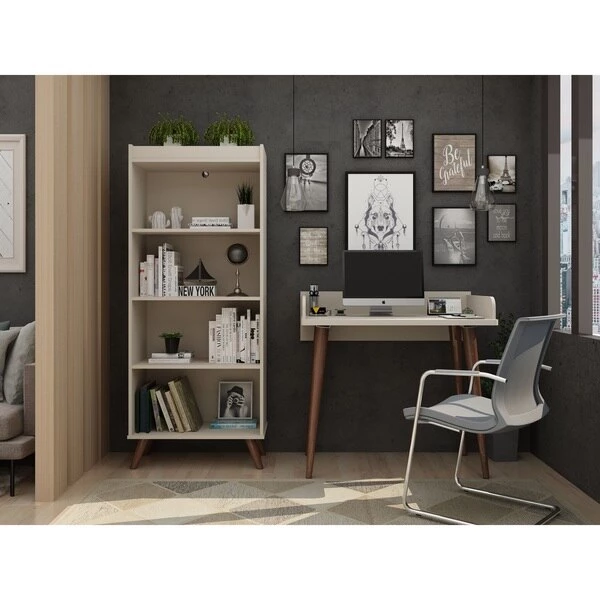 Look forward to crossing off every task with a workspace that checks off all your needs. The Hampton office set offers desk space and plenty of open shelving, without compromising on design and style. A chic bookshelf with beautiful splayed legs helps store files, books, showcases framed family photos, decorative accents, and more. A laptop and tablet easily fit together on a smooth desktop and makes for the perfect workspace, also easily moving from space to space to slide into a bedroom, off the kitchen, or office area.