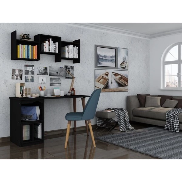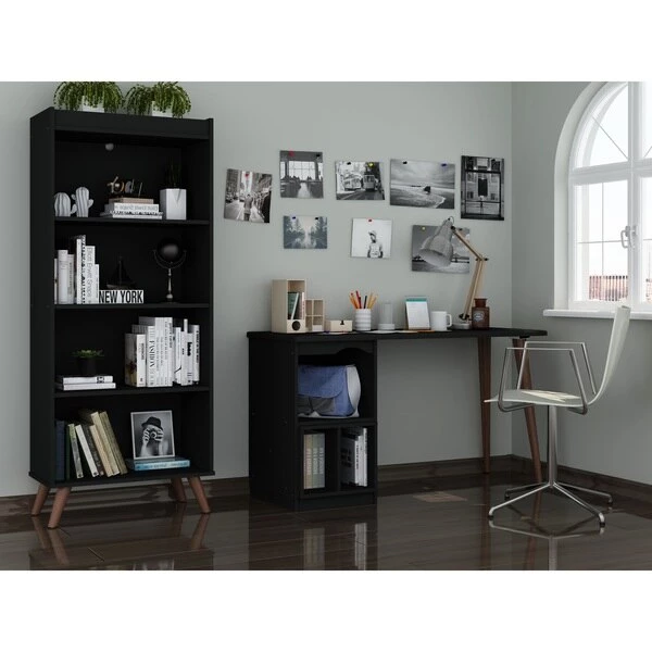 Working from home never looked this good. The Hampton 2-piece home office set offers desk space with open storage that’s perfect for tucking away files, books, tablets and more, while a modern open bookshelf provides plenty of shelving space for displaying collections of books, framed family photos, and decorative accents. With its clean sophisticated mid-century modern design elements and beautiful splayed legs, these pieces easily move from space to space and blend with any existing decor. Work effectively but stylishly with the Hampton home office set that offers two key pieces to upstart the perfect home office space. Mid-century modern design and convenient functionality blend seamlessly to provide plenty of open shelving space to tuck away files, display book collections, framed photos, and more, while a streamlined desk showcases your computer and work accessories with space for a decorative lamp or fresh plant to help make it your own. Each piece easily moves from space to space and works well with any existing decor.