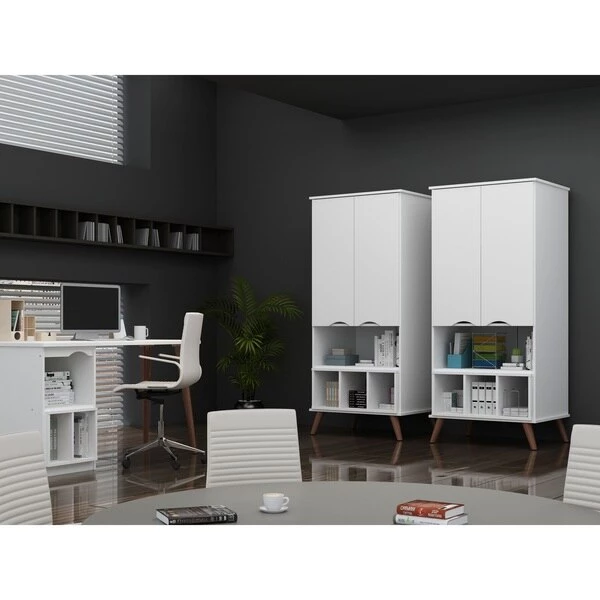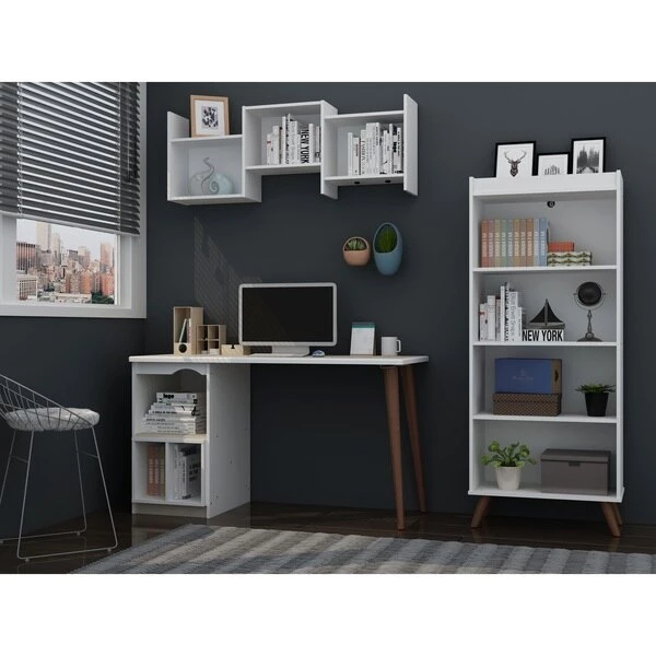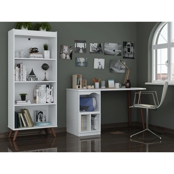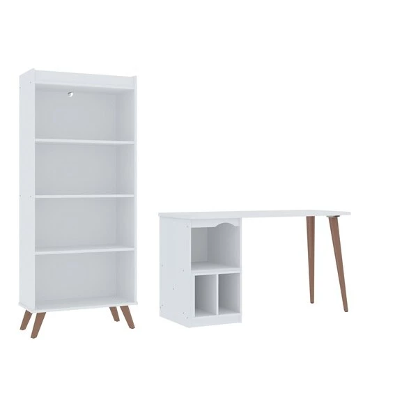 Working from home never looked this good. The Hampton 2-piece home office set offers desk space with open storage that’s perfect for tucking away files, books, tablets and more, while a modern open bookshelf provides plenty of shelving space for displaying collections of books, framed family photos, and decorative accents. With its clean sophisticated mid-century modern design elements and beautiful splayed legs, these pieces easily move from space to space and blend with any existing decor. Work effectively but stylishly with the Hampton home office set that offers two key pieces to upstart the perfect home office space. Mid-century modern design and convenient functionality blend seamlessly to provide plenty of open shelving space to tuck away files, display book collections, framed photos, and more, while a streamlined desk showcases your computer and work accessories with space for a decorative lamp or fresh plant to help make it your own. Each piece easily moves from space to space and works well with any existing decor.