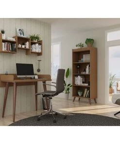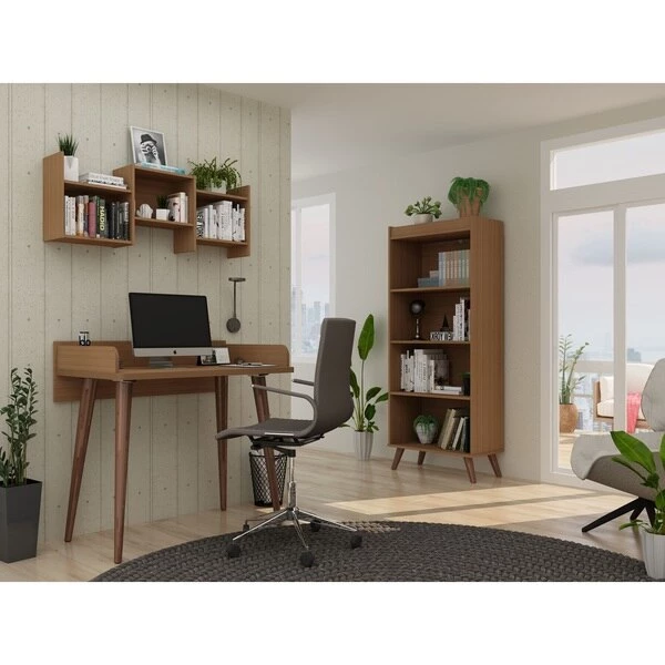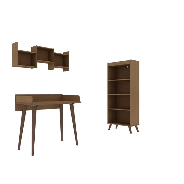 Create the perfect home office and get your work completed in style, with the Hampton 3-piece home office set that provides all your key office pieces to instantly transform any area into a professional and sophisticated workspace. With a nod to mid-century modern design with its splayed legs and clean finish, the desk is a worktop wide enough for any electronics, while an open bookshelf provides ample space for important files, decorative accents, books, or framed photos. Unique open storage cubbies hang above to offer easy access to folders, books, and can display mini vases, fresh plants, and more.