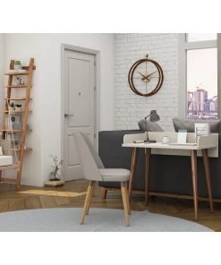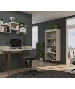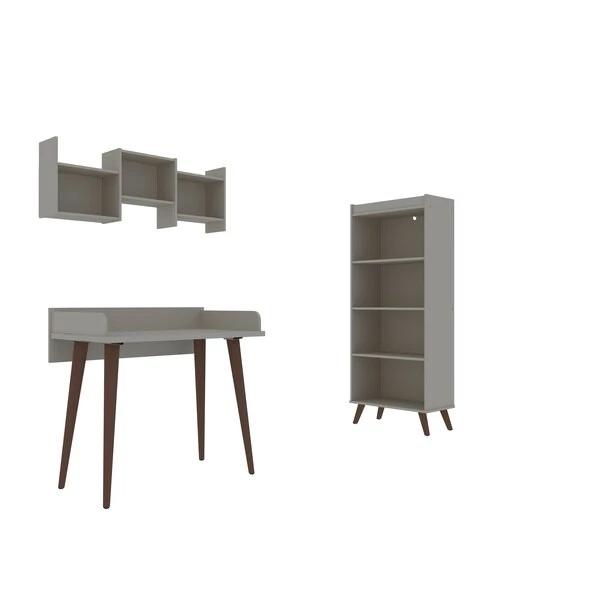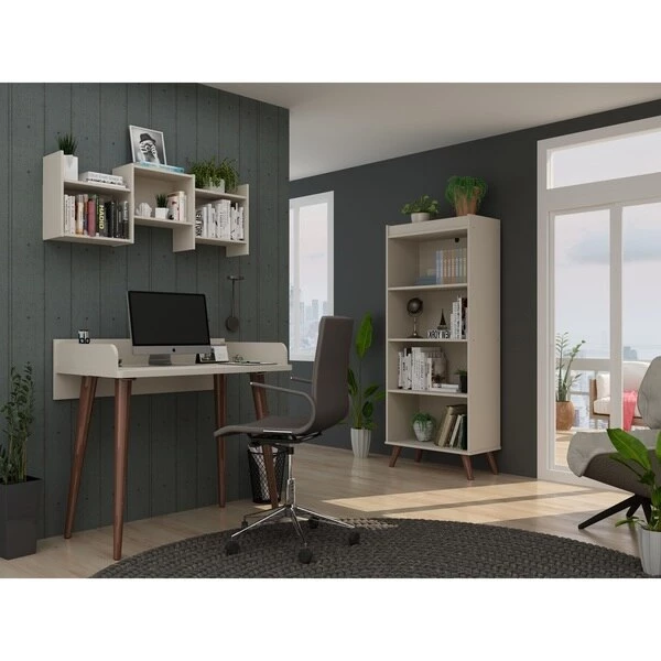Create the perfect home office and get your work completed in style, with the Hampton 3-piece home office set that provides all your key office pieces to instantly transform any area into a professional and sophisticated workspace. With a nod to mid-century modern design with its splayed legs and clean finish, the desk is a worktop wide enough for any electronics, while an open bookshelf provides ample space for important files, decorative accents, books, or framed photos. Unique open storage cubbies hang above to offer easy access to folders, books, and can display mini vases, fresh plants, and more.