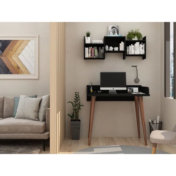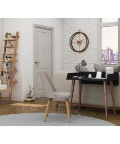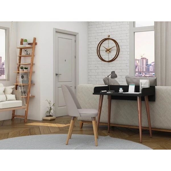 Get work done in style and clock in those hours while comfortably seated at your stylish new desk. Classic mid-century style meets artful design, with splayed wooden legs and a seamless silhouette that allows this piece to easily blend into a home office or rest in a bedroom corner without overtaking or distracting from the space. Plug in your laptop, open the journal, line up your pens and check off all your goals.