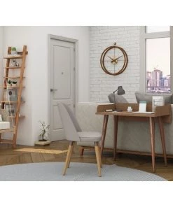 Get work done in style and clock in those hours while comfortably seated at your stylish new desk. Classic mid-century style meets artful design, with splayed wooden legs and a seamless silhouette that allows this piece to easily blend into a home office or rest in a bedroom corner without overtaking or distracting from the space. Plug in your laptop, open the journal, line up your pens and check off all your goals.