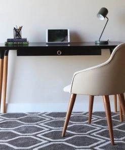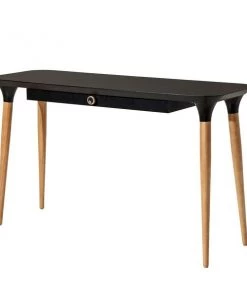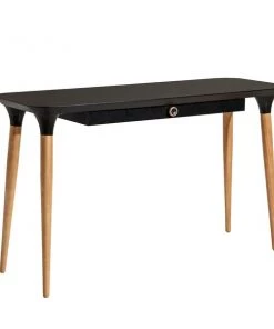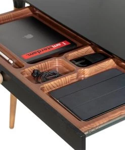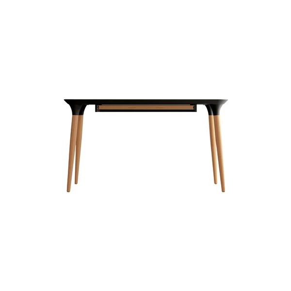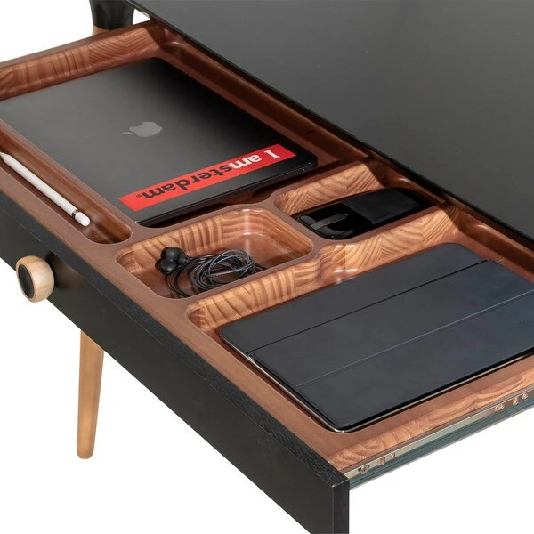 Consider this desk your most stylish spot for sparking creativity. Clean lines, natural pine, and rounded edges take this modern Scandinavian piece up a Notch. Perfect for creating a subtle workspace in a living area or tucked into a guest room to double as an unassuming end table, this piece functions however it suits the space and blends seamlessly with any existing decor. Smartly designed with all your tech needs in mind, a narrow drawer opens to reveal sectioned off areas fit for a laptop, tablets, pens, and other necessities, making it easy to tuck away electronics and personal items.