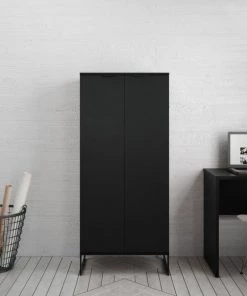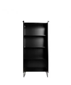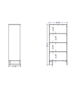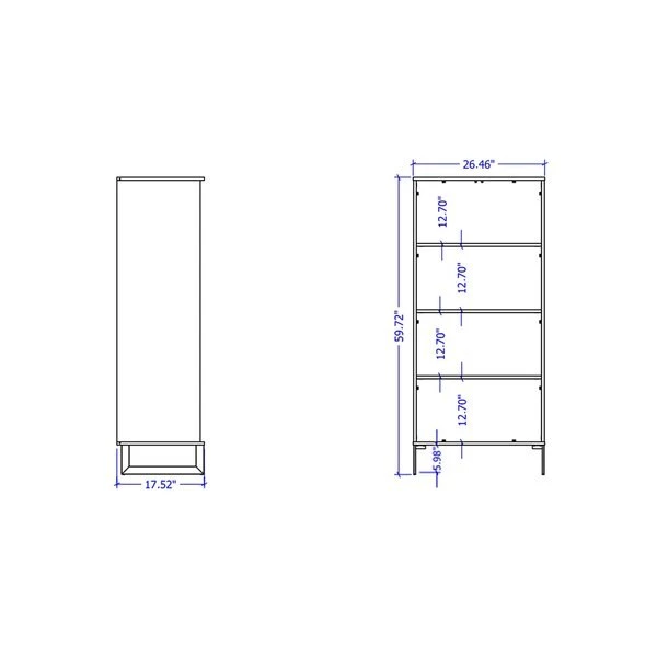 Modern Freestanding Bookcase with Doors Perfect for Home Office and Living Room Usage. * Upon Assembly, Measures: 26.46 in. Length, 59.72 in. Height, 17.52 in. Depth. 26.46 in. Length, 59.72 in. Height, 17.52 in. Depth. * Includes 4 Fixed Shelves. Internal Shelf Height: 12.70". * Perfect for Storage or Display Items. Anti Tip Kit Included. * Option to Fit up to a 20" TV. * Features Include ABS Pull Handles * Legs Made of Carbon Steel with Black Finish for Fashion and Durability. * Home Assembly Required. All Hardware Included