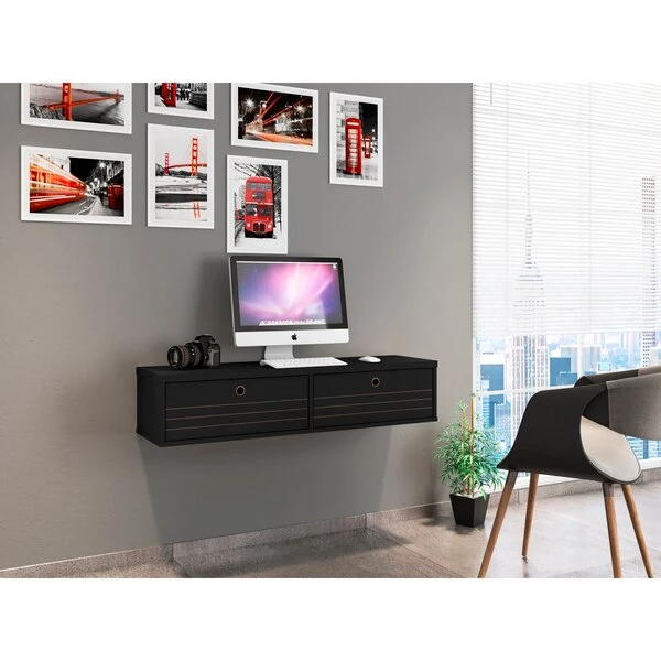 Take care of work and business in style, with the Liberty floating office desk, a seamless and easy solution for the home office you’ve always wanted but never had the space for. With two dropdown shelves perfect for laptops, electronic gadgets, and all your important files, this desk is both functional and designed to perfection with its clean lines and go anywhere aesthetic. In the kitchen, living space, or bedroom, this piece moves from space to space without difficulty.