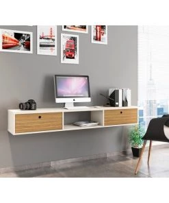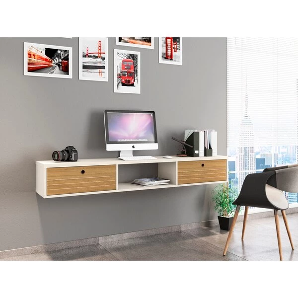Take care of work and business in style, with the Liberty floating office desk, a seamless and easy solution for the home office you’ve always wanted but never had the space for. With two dropdown shelves perfect for laptops, electronic gadgets, and all your important files, this desk is both functional and designed to perfection with its clean lines and go anywhere aesthetic. In the kitchen, living space, or bedroom, this piece moves from space to space without difficulty.