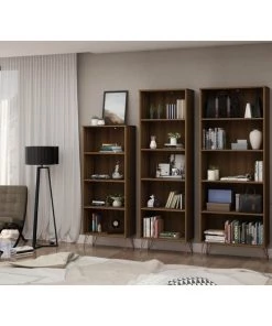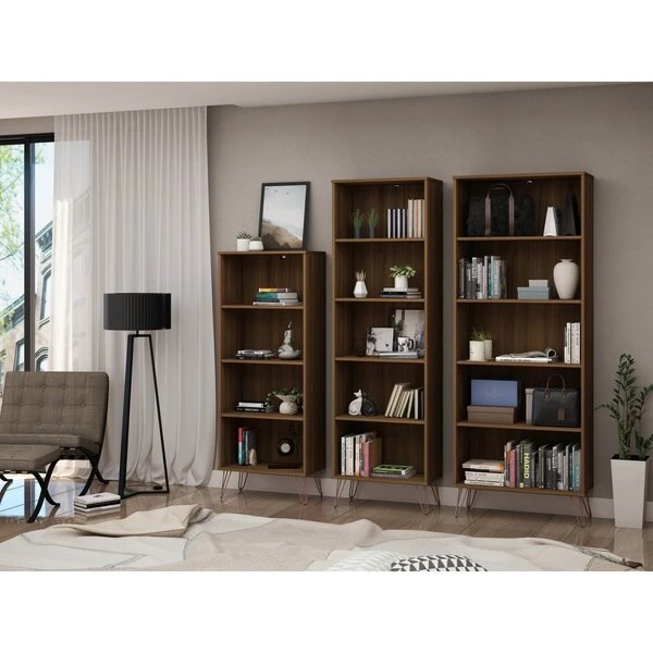 3 Bookshelves to showcase your books and decorative accents the right way with this bookshelf that plays up functionality and convenience in a modern and artful way. Mid-century modern touches like splayed metal legs and a streamlined silhouette easily work in any space. Ample shelving space is perfect for displaying all your favorite things, personal items, and plenty of great reads.