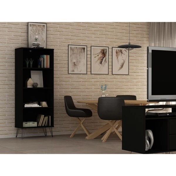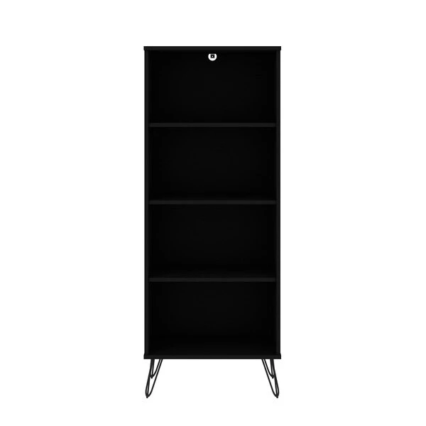 Showcase your books and decorative accents the right way with this bookshelf that plays up functionality and convenience in a modern and artful way. Mid-century modern touches like splayed metal legs and a streamlined silhouette easily work in any space. Ample shelving space is perfect for displaying all your favorite things, personal items, and plenty of great reads.