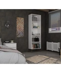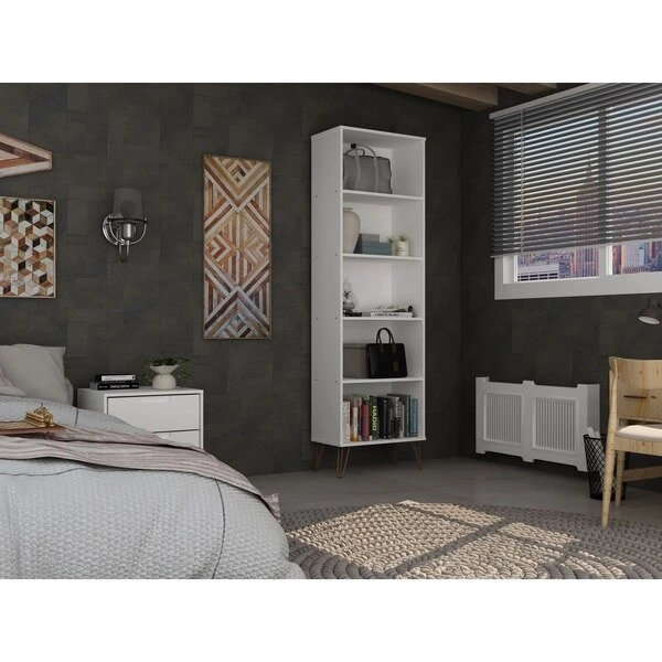 Modern, functional, and mid-century modern at its best, the Rockefeller bookcase features plenty of shelving space perfect for displaying your impressive book collection, decorative accents, and favorite framed photos. A seamless design and artful metal played legs keep this piece fresh as it moves easily from space to space and works well with any existing decor. Line up books by color in stacks, dress up the shelves with fresh florals, and use it over and over again.