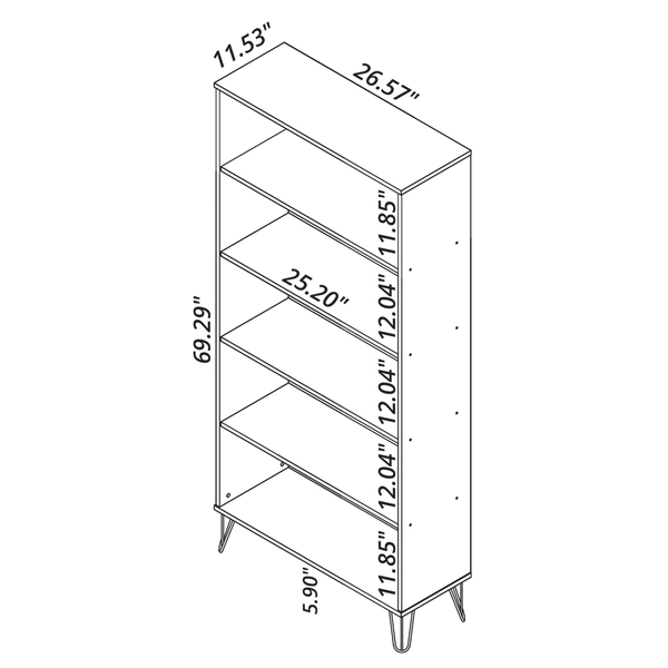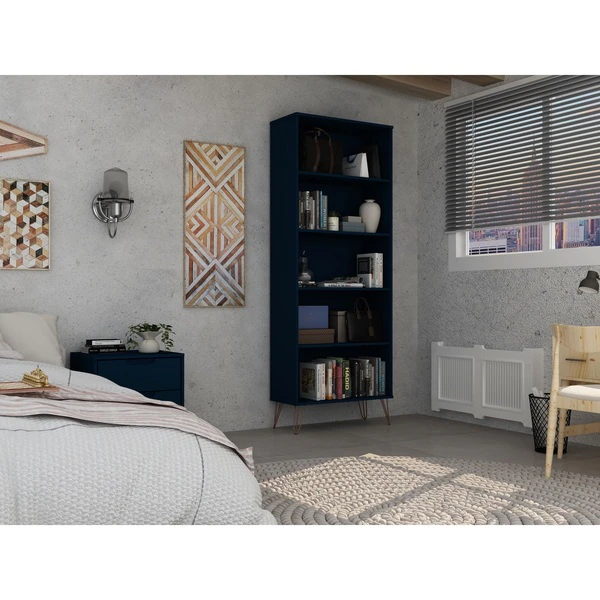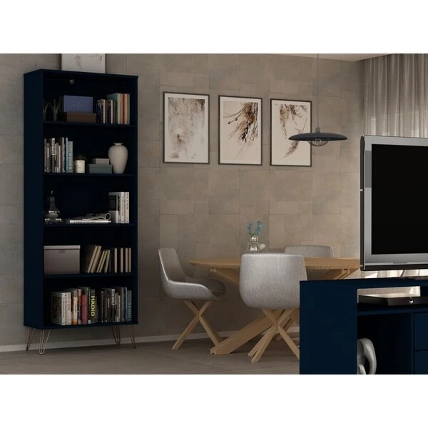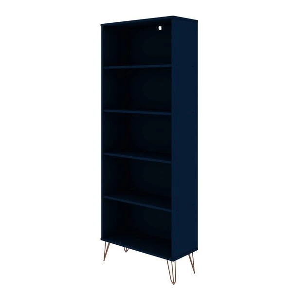 The Rockefeller bookcase features ample shelving space to show off your favorite reads and most impressive collection of books. Change it up with decorative accents and add framed family photos to the mix, to keep it artful and fresh. Mid-century modern clean lines and splayed metal legs keep this piece on trend, easily blending from space to space with functionality and style in mind.