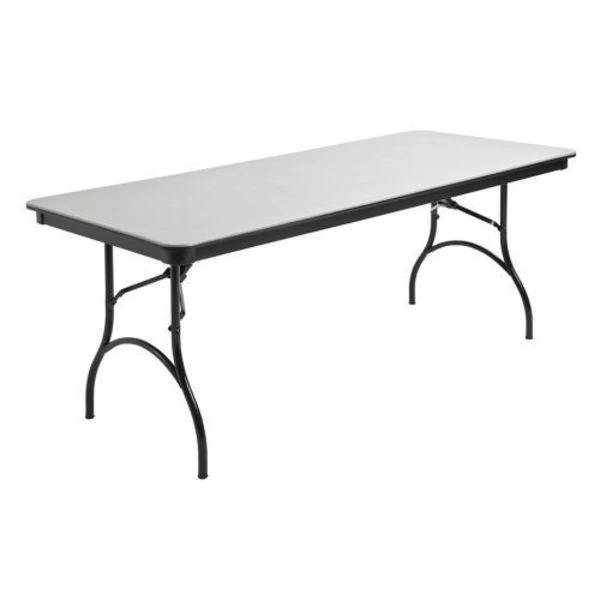 Textured Gray Plastic Rectangular Table, 30 In. Wide, 72 In. Long, 29 In. High, Wishbone Legs