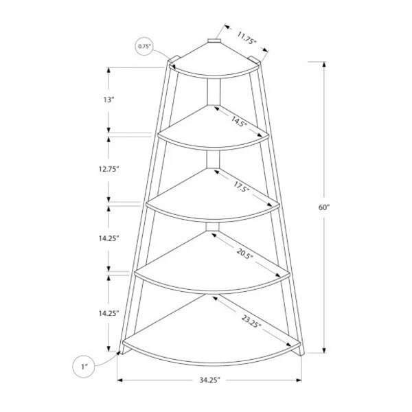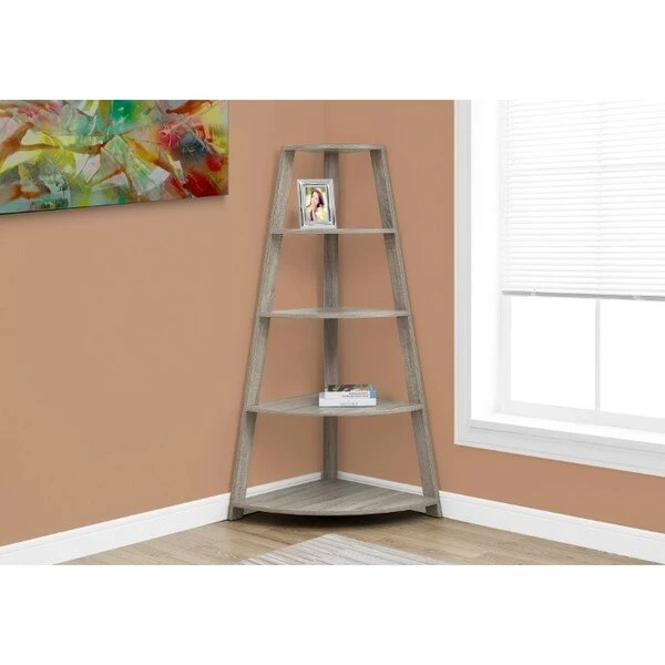 Monarch Specialties Bookcase, 60"H, Dark Taupe Corner Accent Etagere