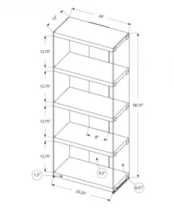 Spoil yourself with a chic tempered glass etagere that provides a perfect spot for candles, books, photo grams and other decor items. With 4 multi-functional, thick paneled display shelves in a glossy white finish, you'll be sure to add interest wherever you choose to place this accent display case. The 5-tier etagere is equipped with polished chrome accents for more elegance. Make this bookcase the new feature in your living space.. Featuring 4 fixed display shelves in glossy white and chic tempered glass sides that create an inviting look, making your room appear more spacious . Finished on all sides, this accent display unit is a great way to showcase your books, favorite decor items or electronics . Polished chrome accents provide added elegance to complement any home or office space; bookshelf also includes rear glass panel for sturdiness . This 5 tier bookcase takes advantage of height to offer a generous amount of storage space in small homes, apartments or condos .