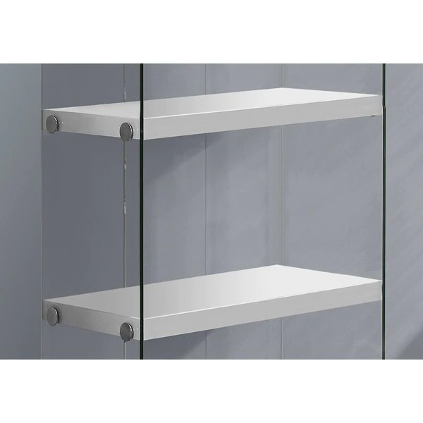 Monarch Specialties Bookcase, 60"H, Glossy White With Tempered Glass