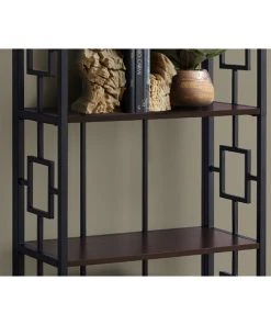 Monarch Specialties Bookcase, 62"H, Espresso, Black Metal Etagere