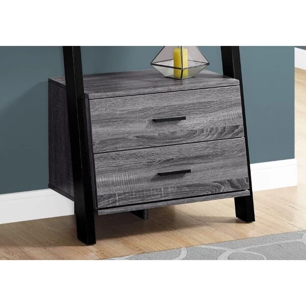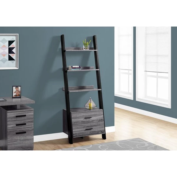 Monarch Specialties Bookcase, 69"H, Grey-Black Ladder With 2 Storage Drawer