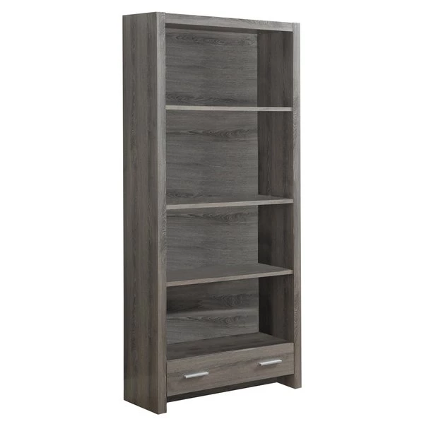 Sleek and contemporary, this chic dark taupe wood-look bookcase is the perfect combination of design and function. With clean lines, thick panels and a bottom drawer, this bookcase will keep you organized in style. Plenty of storage space with a total of 4 shelves, including two adjustable shelves for all your books or decorative objects.