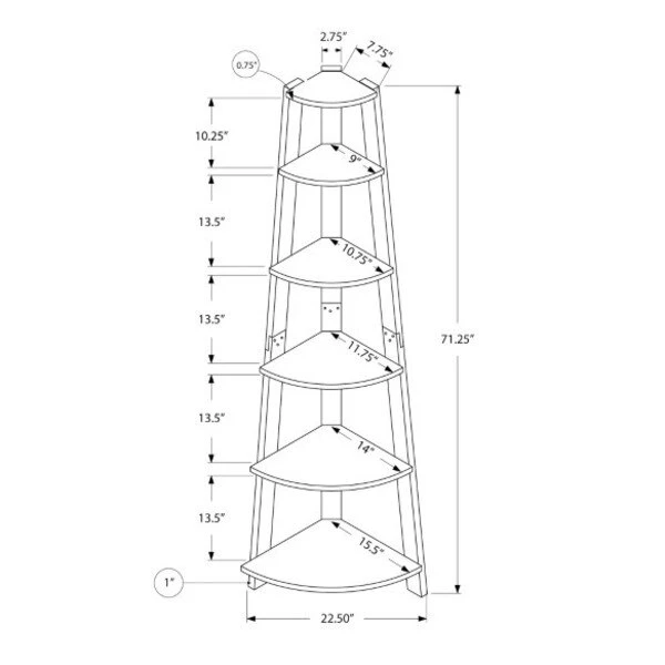 Set up this etagere bookcase easily and let it do its thing! Look how nice the bookshelf fits in a corner of your living room, office or bedroom, allowing you to showcase books and all types of decor easily. Make use of a spot that is often tough to work with: the corner. Maximize storage and display with a modern piece that will be sure to help you utilize all the space available to you thanks to 5 fixed tray style shelves. Three sturdy beam legs ensure structural integrity to this corner ladder shelf finished in a beautiful black color. Anti-tipping hardware is included for further stability.. Maximize the space in a rather troublesome area: the corner, with this practical etagere bookcase . The bookshelf fits in the corner like a charm; 5 ladder shelves in a thick panel construction are perfect for books and other decor items . Trendy black color pairs effortlessly with any other style . Looks great in the living room, bedroom, home office or hallway; this corner bookcase boasts a sleek on-trend contemporary fee .