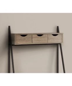 When you desperately need to carve out your own workstation but space is a challenge, then look no further than this space-saving computer desk that includes plenty of storage! Finished in a warm, dark taupe wood-look laminate with a sturdy black metal frame, this compact workstation has enough surface area to place a laptop and a small lamp, with a long drawer on metal glides to tuck away easy to reach office essentials. Look up and you have another 3 storage drawers on top with a shelf to place a few books, decorative accessories, and other inspirational objects. This desk can sit in a hallway, your livingroom, bedroom, or any nook where you can have your own creative workspace without taking up too much room. Assembly is required.. Contemporary style workstation in an elegant dark taupe wood-look laminate finish. Strong black metal framing to hold a spacious work surface to place a laptop, lamp, and office accessories. Plenty of storage with a long drawer on metal glides with a built-in handle, and 3 drawers on top with a shelf for other essentials within easy reach. Compact size makes it an easy fit for small homes and spaces.