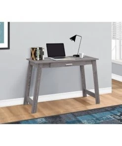 This simply designed, contemporary style rectangular desk with an elegant grey wood-look finish, is perfect for any space in your home. This versatile desk with sturdy angular legs has plenty of room for a laptop, a lamp, books or office essentials, and the single storage drawer accented with a sleek silver handle is useful for papers and office supplies. Easily suitable in a home office, a hallway or in a living room, this computer/writing desk brings practicality and style to small spaces.. Spacious desk top for a laptop, tablet, a lamp, or books. Sturdy legs with a cross-bar support at each end. 1 storage drawer with silver handle for paperwork and office essentials. Contemporary design perfect for small spaces.