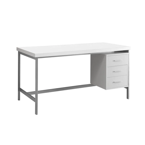 Your workstation needs to be both functional and easy on the eyes. To serve that purpose, this office desk is there for you with all you need to get the job done. A sturdy silver metal frame, 3 convenient storage drawers and a smooth white laminate finish on all sides – a recipe for success! The 60-inch length provides more than enough surface space for a computer, lamp, notebooks and more.