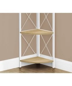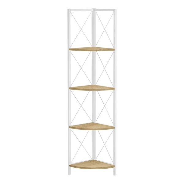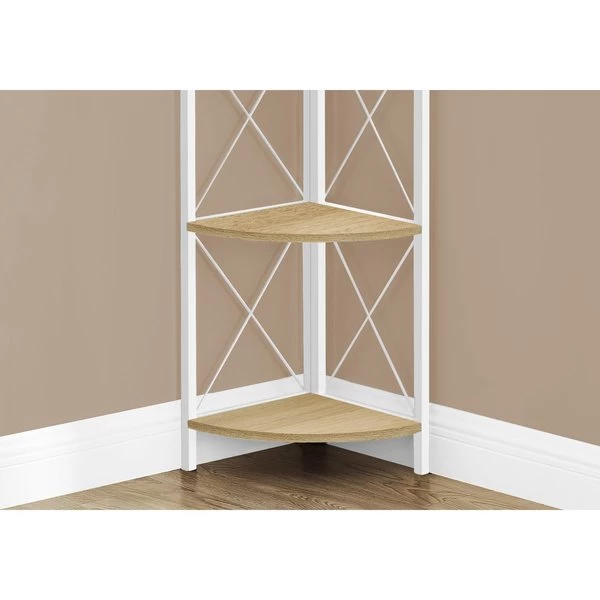 Monarch Specialties Corner Etagere Bookcase – 60"H / Natural / White Metal