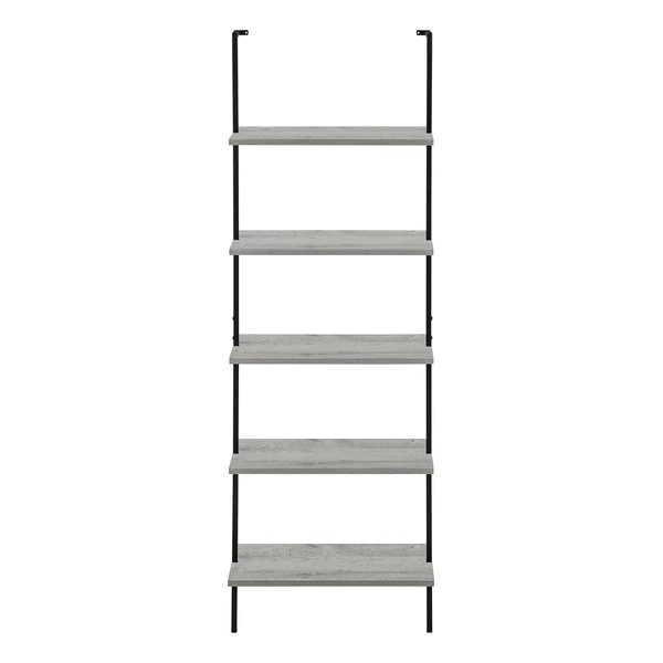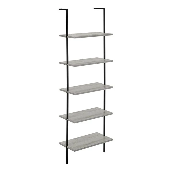 Monarch Specialties Ladder Bookcase – 72"H Grey / Black Metal
