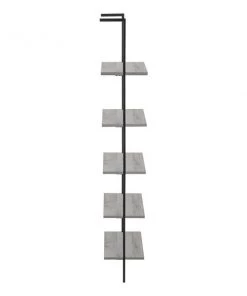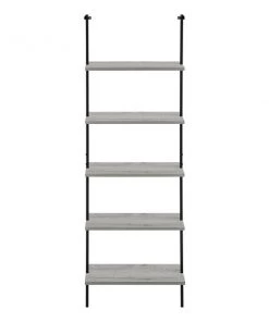 This charming and minimalist ladder bookcase is a great way to bring modern style to your decor. It is crafted with an open black metal frame that mounts to the wall to keep it in place. Five tier ample shelving made from engineered wood in a grey wood look finish and provide the perfect place for books, plants, bar essentials, or anything else you want to display. Mount this tall and narrow space-saving bookshelf to the wall in your home office, living room, or bedroom.
