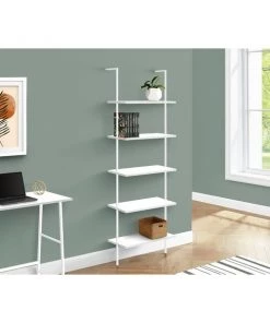 Monarch Specialties Ladder Bookcase – 72"H White / White Metal
