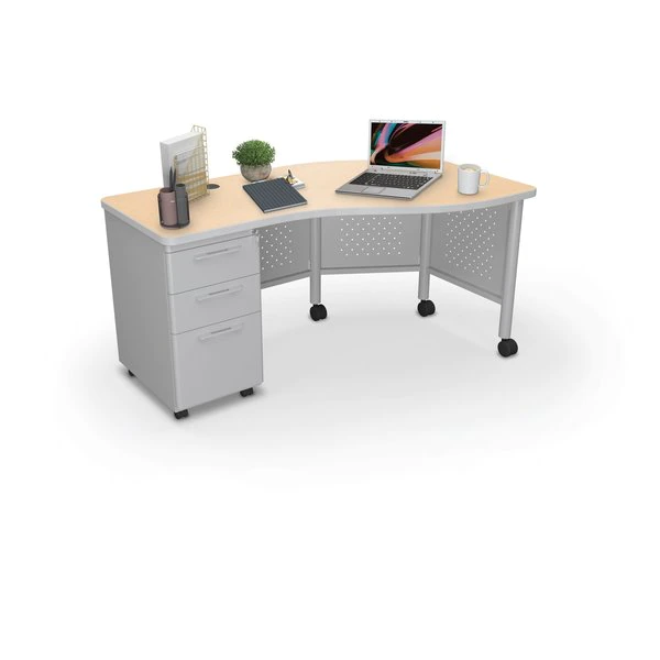 The flexible and customizable design of the Avid Modular Desk System makes creating your ideal workspace a breeze. Pedestals offer ample file and supply storage and include screw-on handles. Instructor desk option is ideal for classroom and other educational settings. Platinum base adds style to any space. SCS Indoor Advantage Gold Certified.
