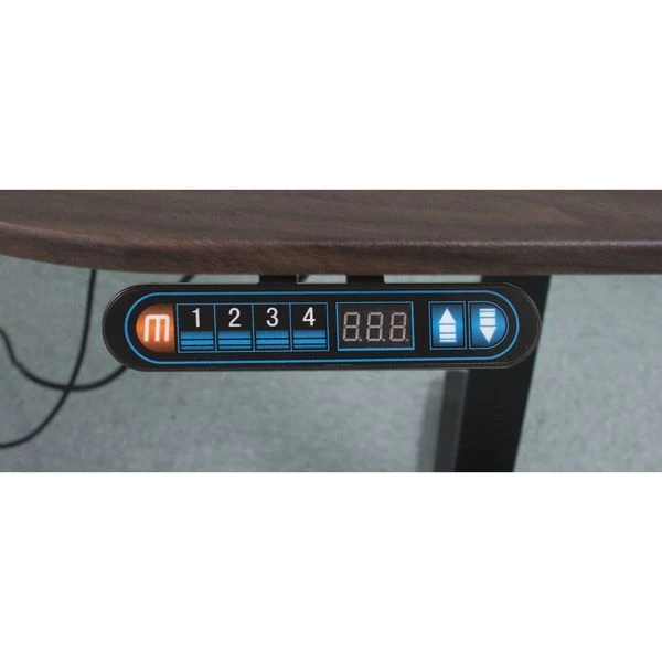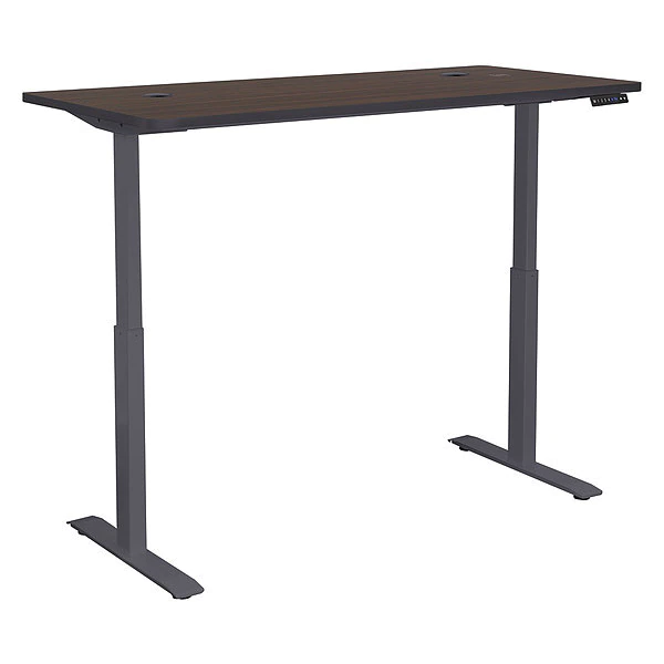 Adjustable Desk with Wireless Charger, Manager Plus Series, Overall Width 60 in, Height Range 28 in to 48 in, Overall Depth 30 in, Color Base Gray, Color Top Walnut, Base Material Steel, Top Material Particle Board, Assembly Required, Standards BIFMA, CE, CSA, EIN526-527, EMC, ETL, UL, For Use With Desktops, Includes Control Panel, Power Supply, Green Certification or Other Recognition Environmental Transparency Through EPD (Environmental Product Declaration)