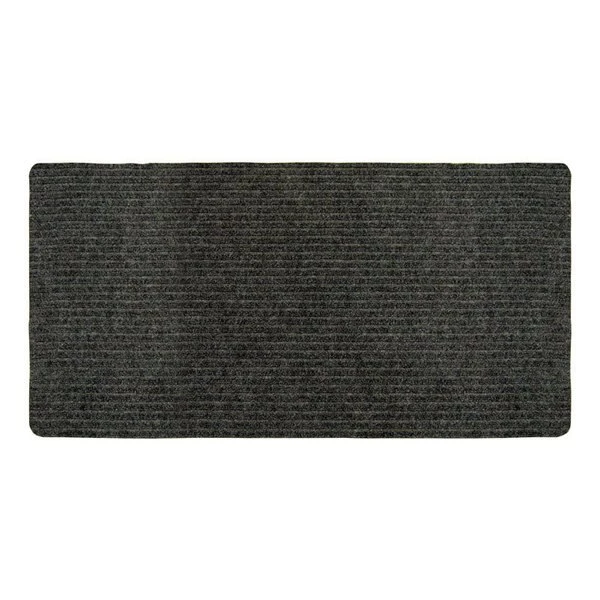 2 foot x 5 foot. Concord utility runner. Charcoal. Tough and durable. Precut carpeted floor runner. 100 percent polypropylene tri-rib top surface and non-slip gel backing. For indoor or sheltered outdoor use.