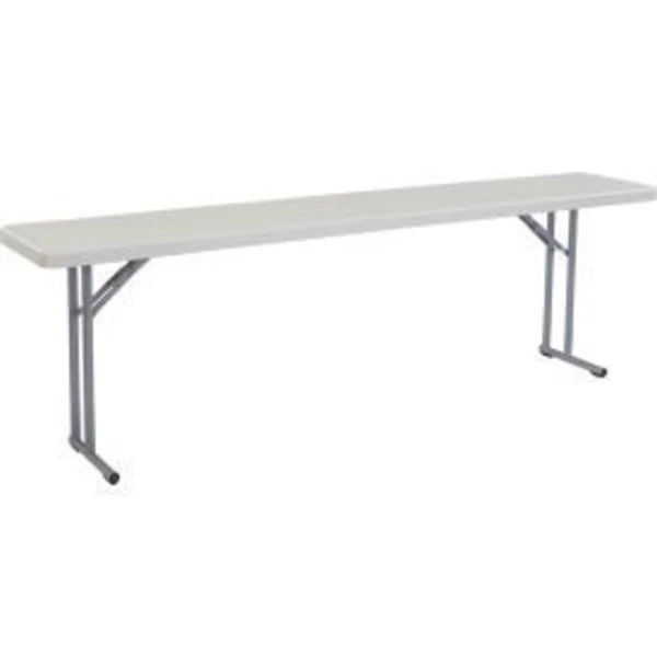 CONVENIENTLY LIGHTWEIGHT AND TRANSPORTABLE. THE BLOW MOLDED PLASTIC TABLETOP IS SCRATCH-RESISTANT YET STILL ENABLES A SURFACE SMOOTH ENOUGH FOR WRITING. THE TEXTURED GRAY POWDER-COATED 16-GAUGE STEEL FRAME FEATURES LEG BRACES WITH SPRING-LOADED PUSH-BUTTON CLOSING CAPABILITY FOR MAXIMAL EASE AND STABILITY. BEST OF ALL, THE CANTILEVERED LEGS OFFER AMPLE AND COMFY LEG ROOM TO PREVENT THE USER FROM BANGING THEIR KNEES. 700 LB. WEIGHT CAPACITY.