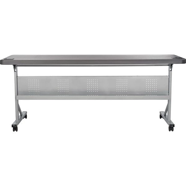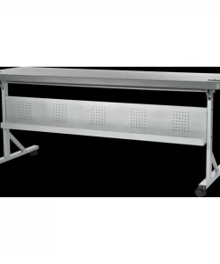 The "Flip-N-Store," our Blow-molded Polyethylene Flipper Table, is a fantastic addition to any training/conference room or seminar set-up. Its smoothly textured and charcoal gray high-density plastic surface flips open and closed with a dual-lever mechanism for amazingly convenient use and storage. Simple to clean and lightweight, the tables also nest together to save space and roll with ease on four 2” casters (two locking). These units feature a reversible modesty panel made of perforated steel with a built-in cable channel as well as removable dual grommet holes for wire management while keeping electronic devices connected and charged. The gray hammer-tone powder coated frame and legs are made of strong powder-coated steel and boasts a weight capacity of 700 lbs. Affordable and a cinch to assemble, you'll flip for the "Flip-N-Store!" The BPFT is MAS Certified Green.