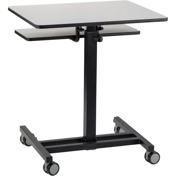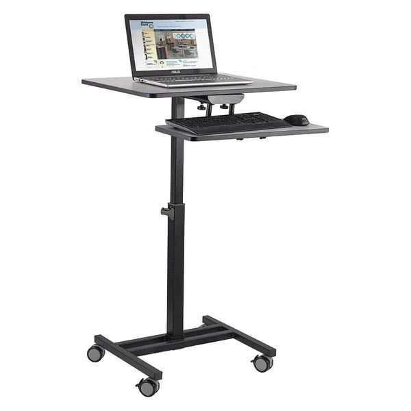 Mobile Workstand, Load Capacity 75 lb, Width 26 in, Depth 20 3/4 in, Height 27 3/4 in to 44 1/2 in, Workbench/Table Surface Material Steel, Workbench/Table Frame Material Steel, Tilting Angle Not Applicable, Gauge 16 ga, Caster Dia. 2 1/2 in, Caster Configuration (4) Double Wheel Hooded, Color Gray, Includes Desk Top, Steel Frame, Two Locking