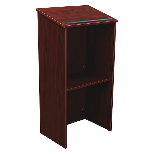 Floor Lectern,Mahogany, Floor, Sound System No, Height 46 1/2 in, Width 23 in, Depth 16 in, Color Mahogany, Material Particleboard, Includes Caster Kit (#2CS), Floor Glides