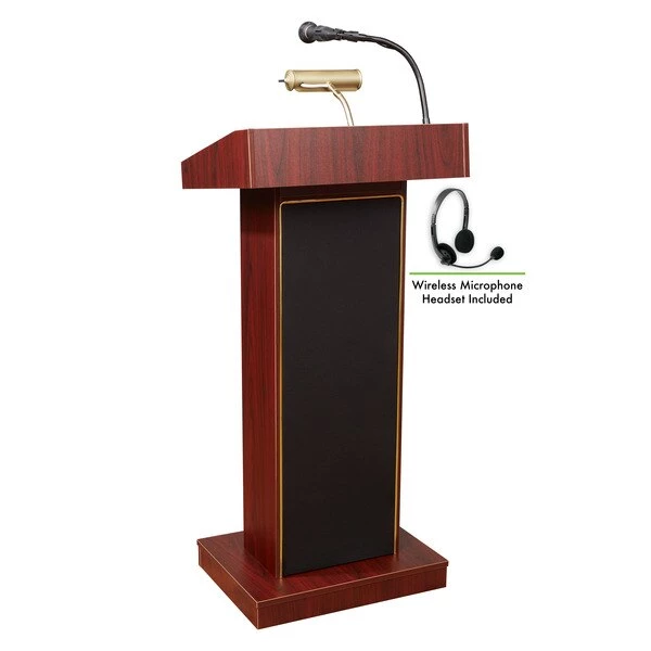 Oklahoma Sound Orator Lectern with Wireless Headset Mic, Mahogany