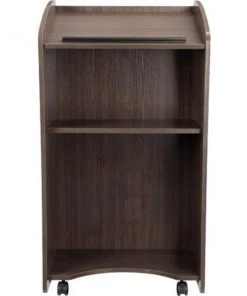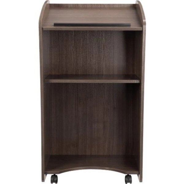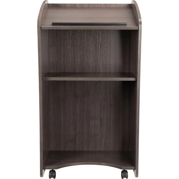 The 611 Vision lectern is truly a sight to see. This gorgeous, dynamic lectern is perfect for presenting in more intimate venues like classrooms and conference rooms. Its sleek cabinetry features scratch-resistant, wood laminate over a medium-density fiberboard (MDF) core with two sizeable 14.5" x 23" shelves for ample storage and four concealed easy-roll casters (two locking) for smooth mobility. Comes in Ribbonwood Laminate.