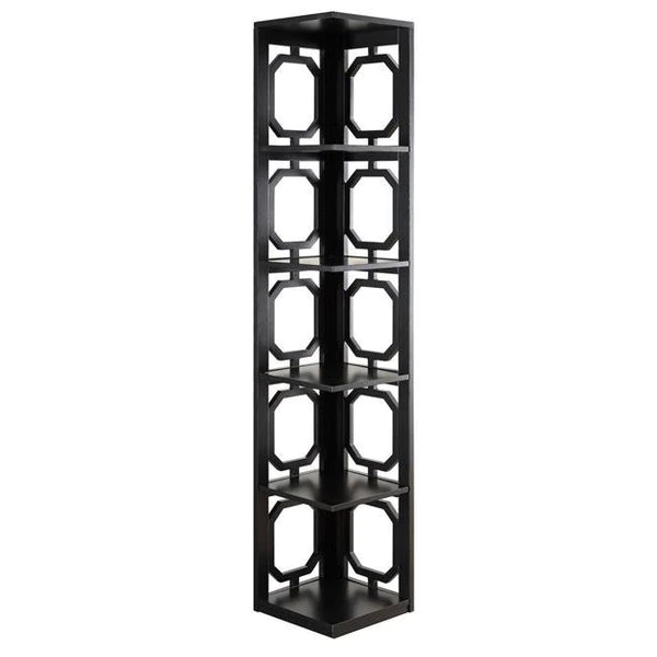 Add both function and style to an otherwise unused corner with the Omega 5 Tier Corner Bookcase. Featuring an open space that provides 3 spacious shelves for decoration collections art and books.This piece can transform any space into something truly beautiful. Surely will provide years of enjoyment.FeaturesCorner Design5 Shelves for StorageEasy AssemblySpecificationsColor: BlackDimension: 63.75" H x 12" W x 12" LWeight: 25 lbs